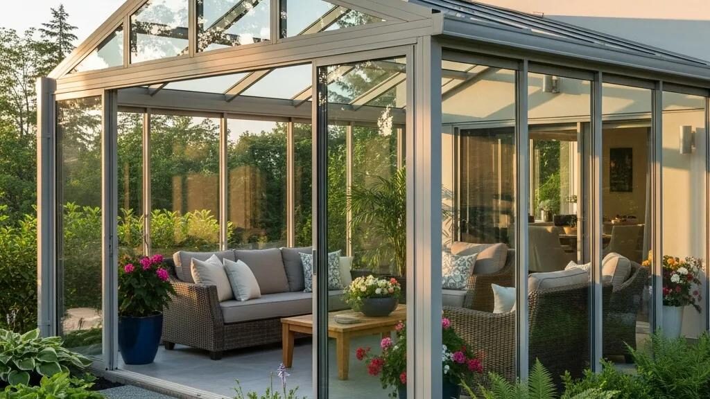 Both plants prefer moist, well-drained soil and benefit from the protection of a roof, which prevents their leaves from being scorched by the occasional afternoon sun. Their unique shapes and colors can create a stunning contrast against the clean lines of an aluminum frame or the transparent panels of a glass roof. They are the ultimate “vibey” plants for creating a cool, calm outdoor sanctuary.